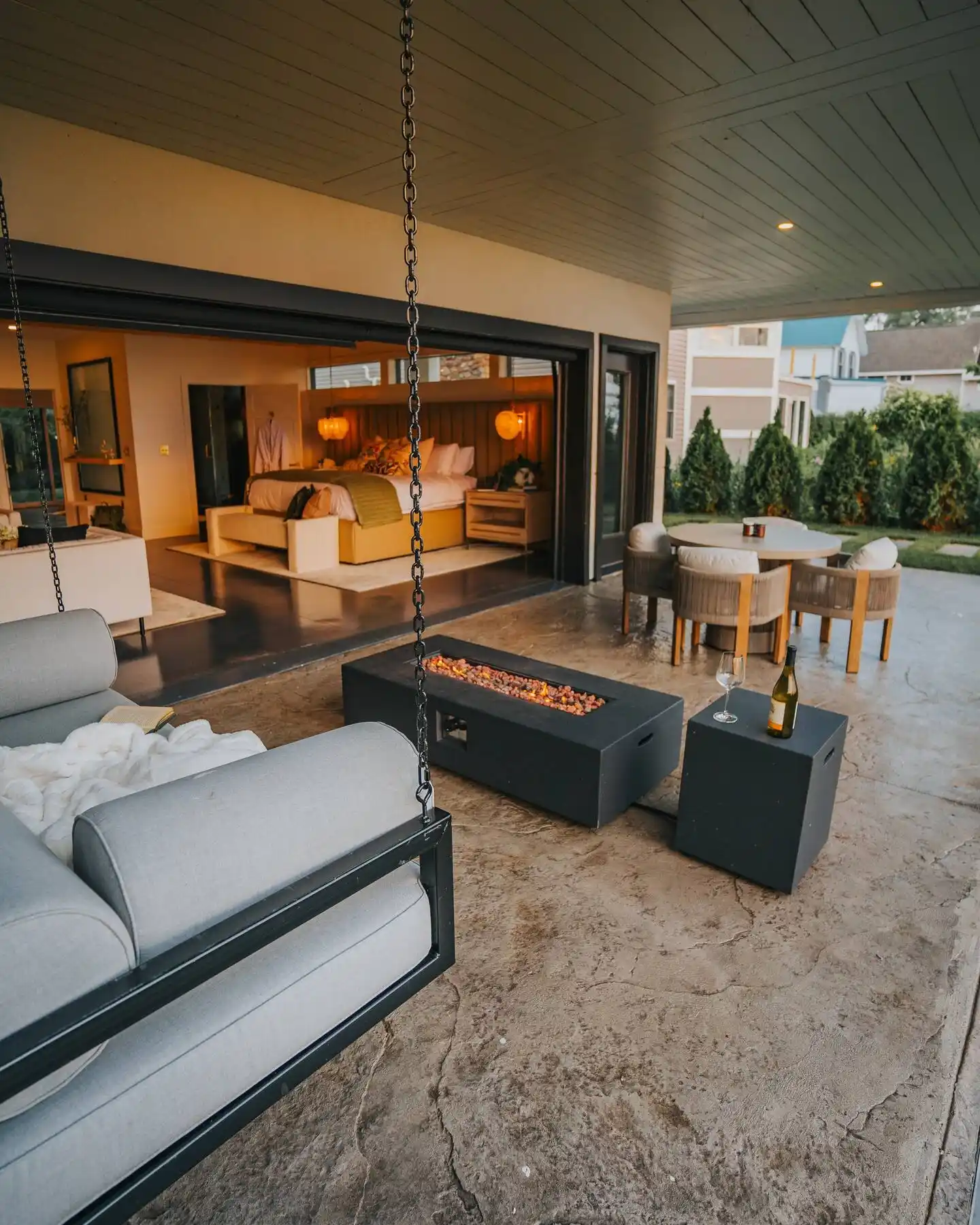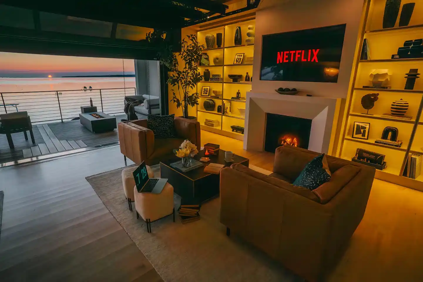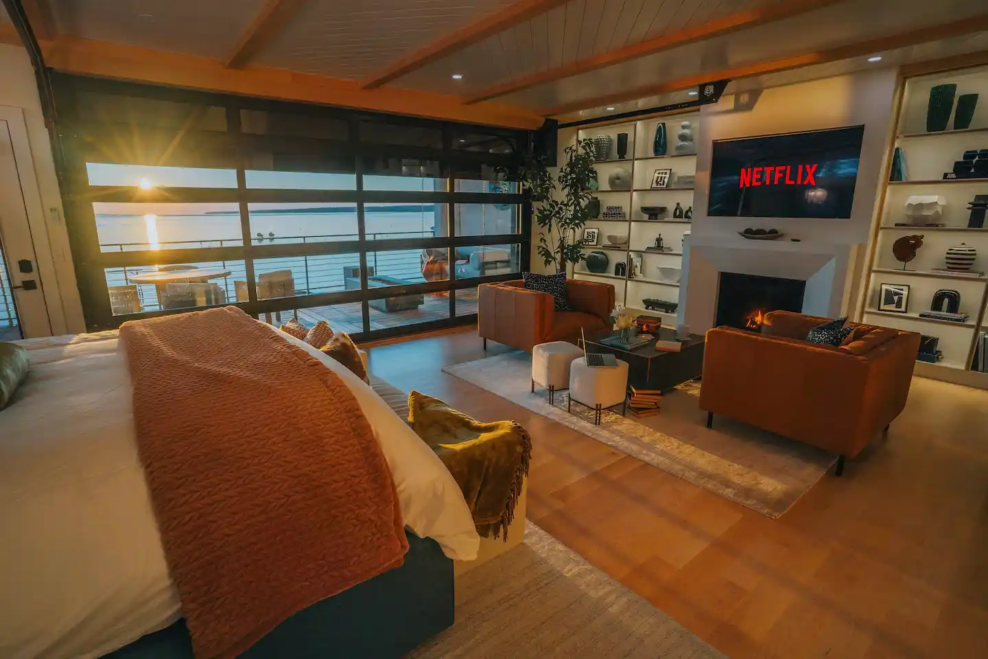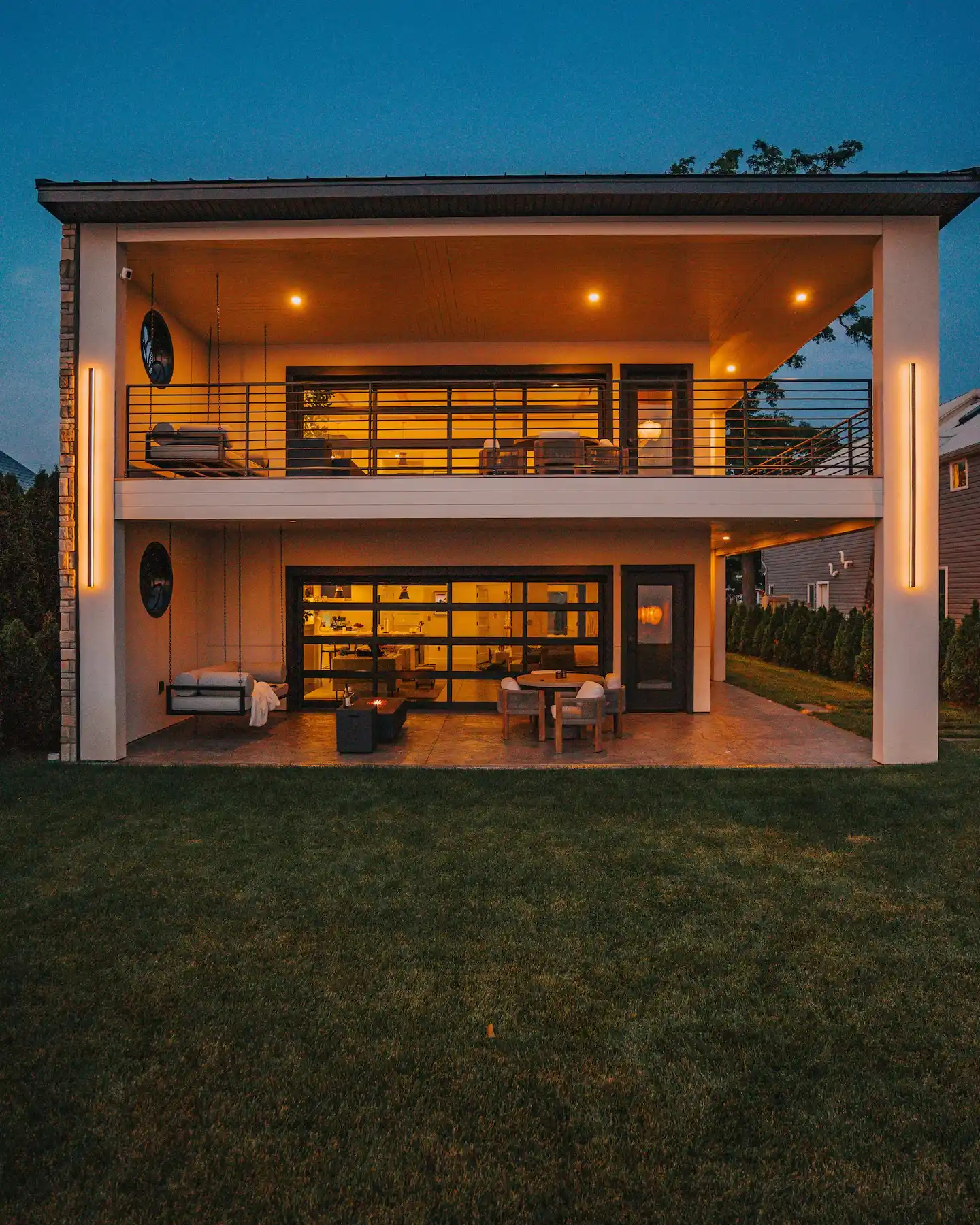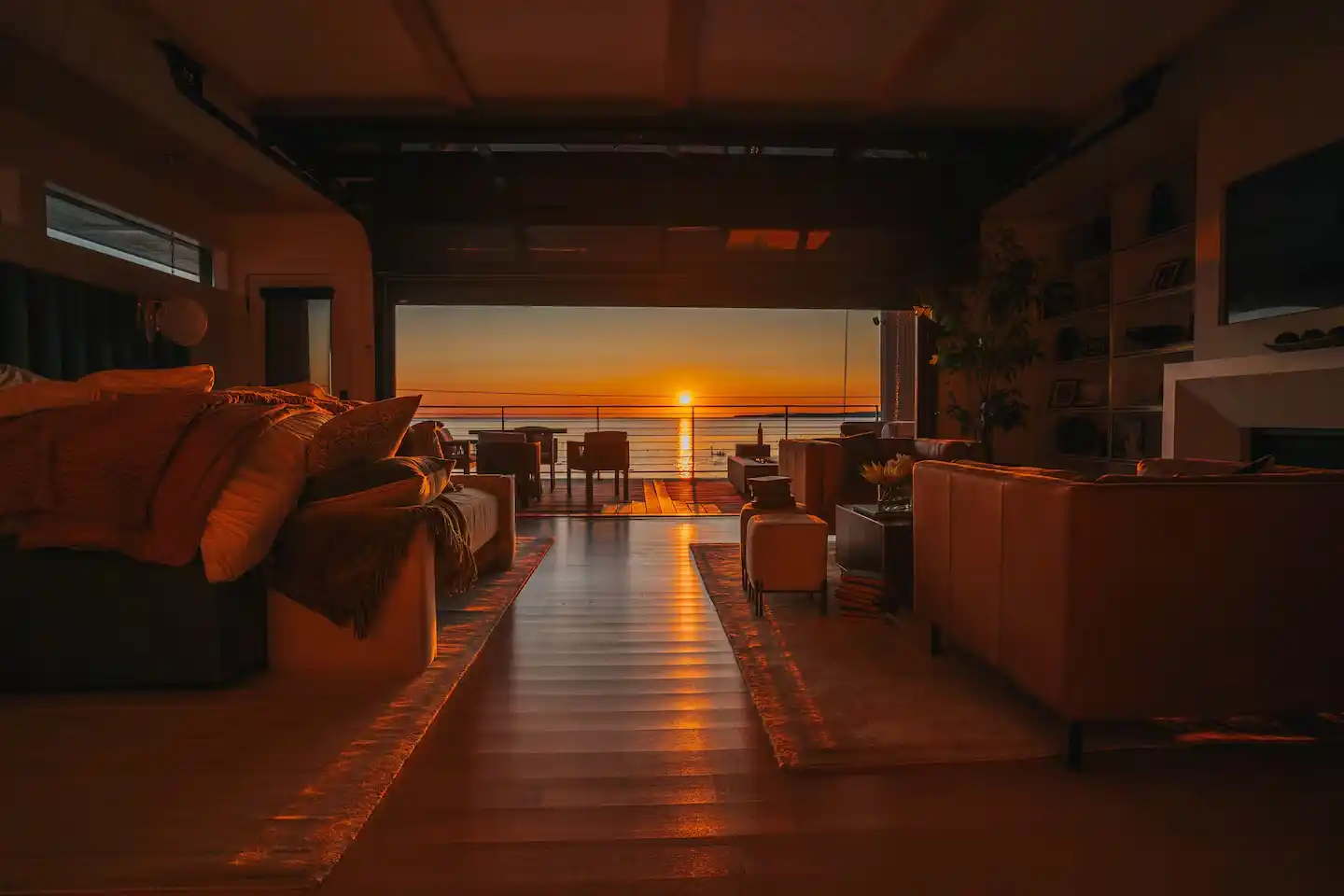 Open the massive doors and let the entire space breathe while you marvel at the million-dollar lake
