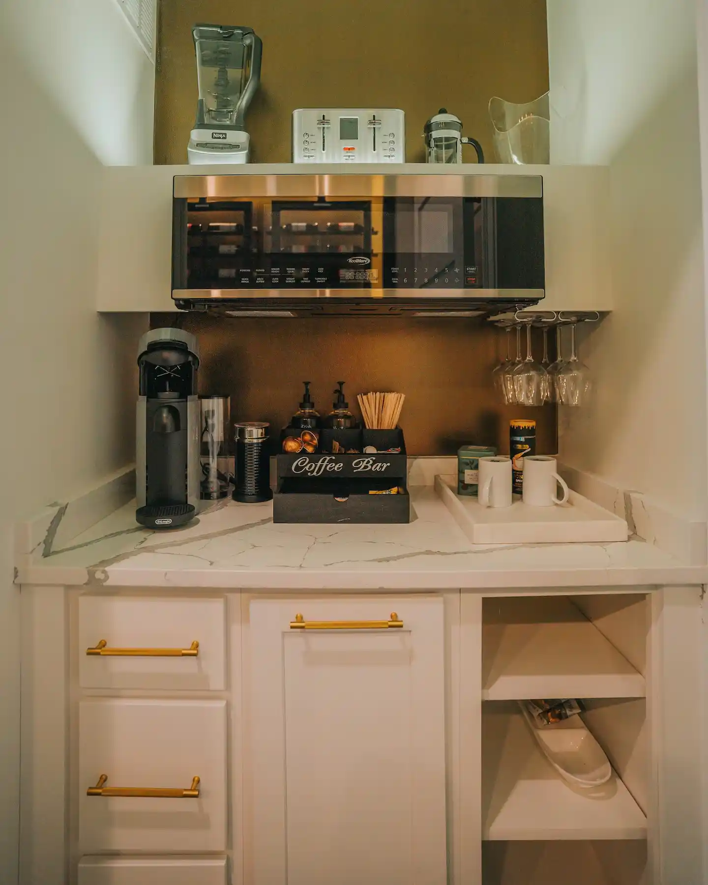 relaxing living room with the fully-equipped kitchen and the stunning wine bar where you can find the