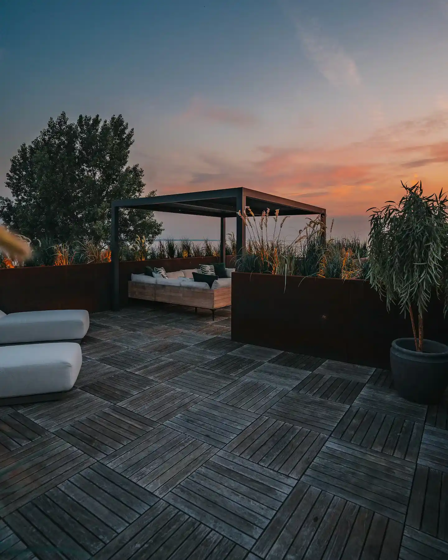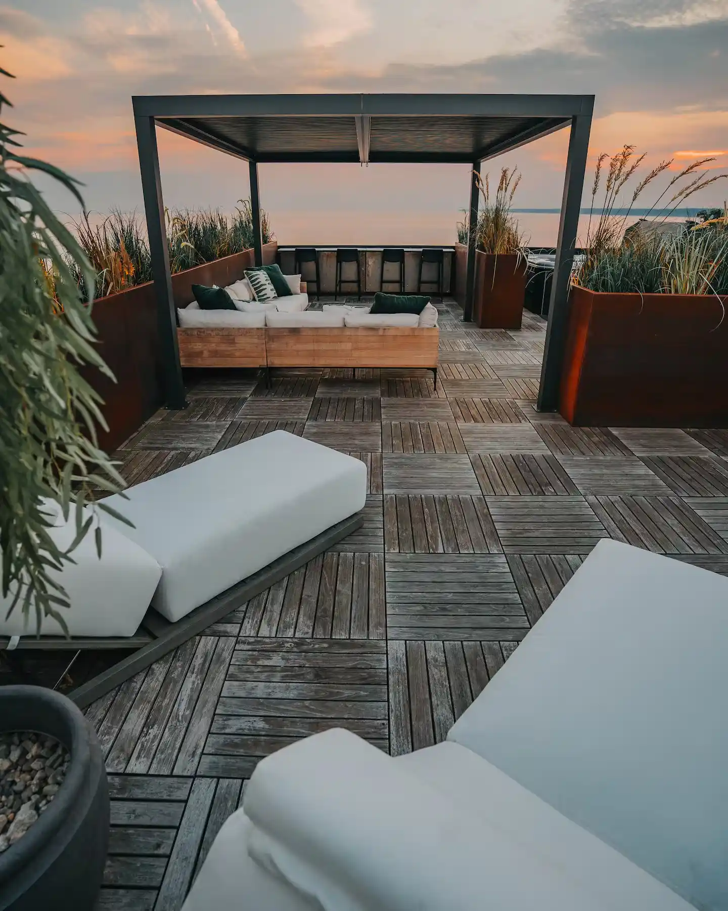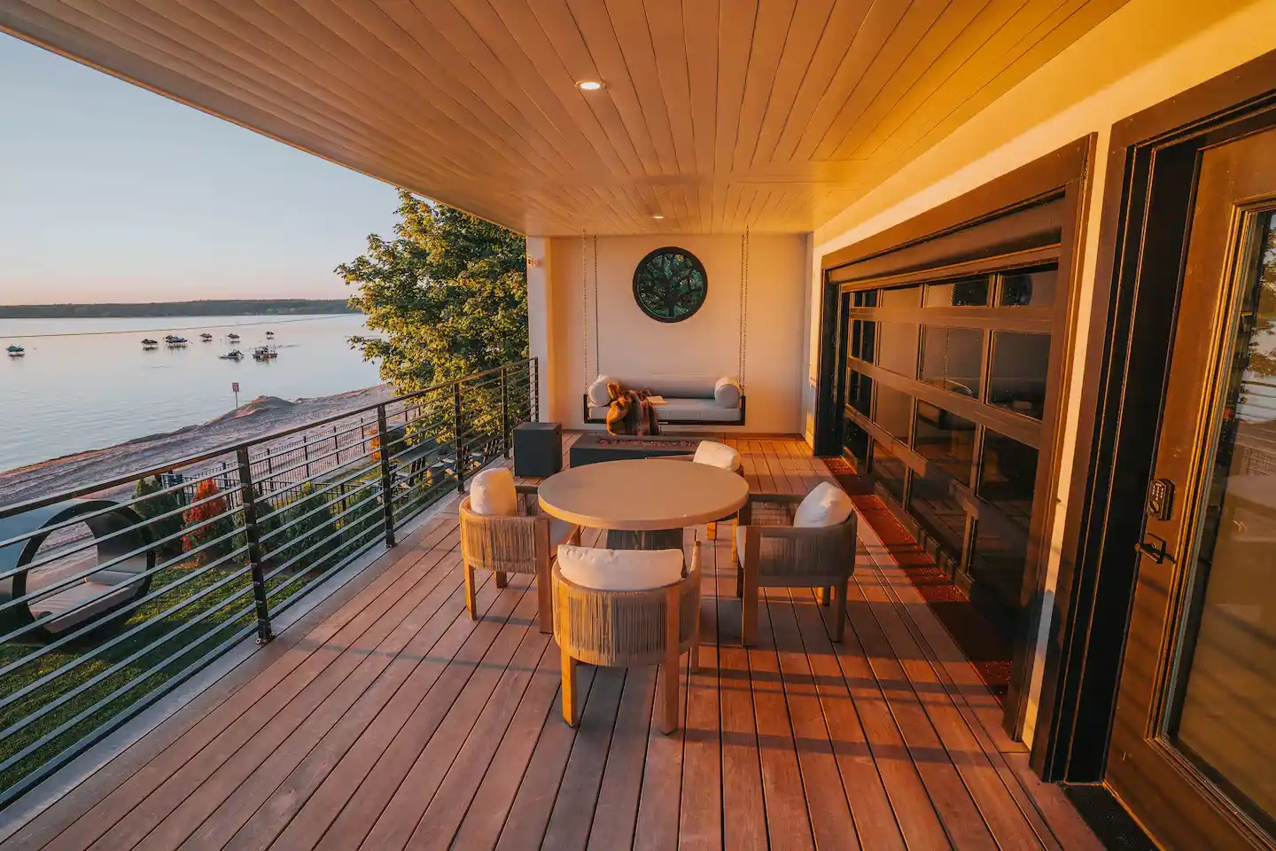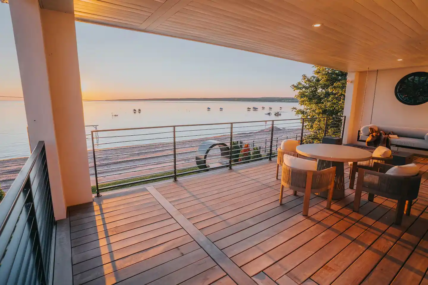 Finally, there‘s the magical deck overlooking the private beach. With plenty of room to spare, it provides a
