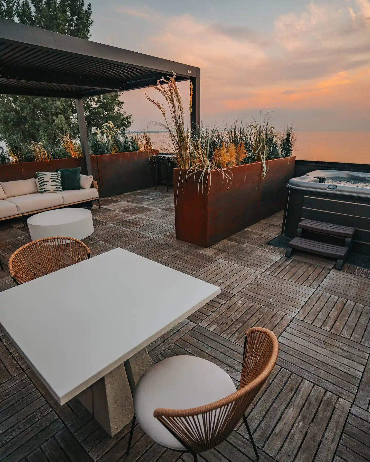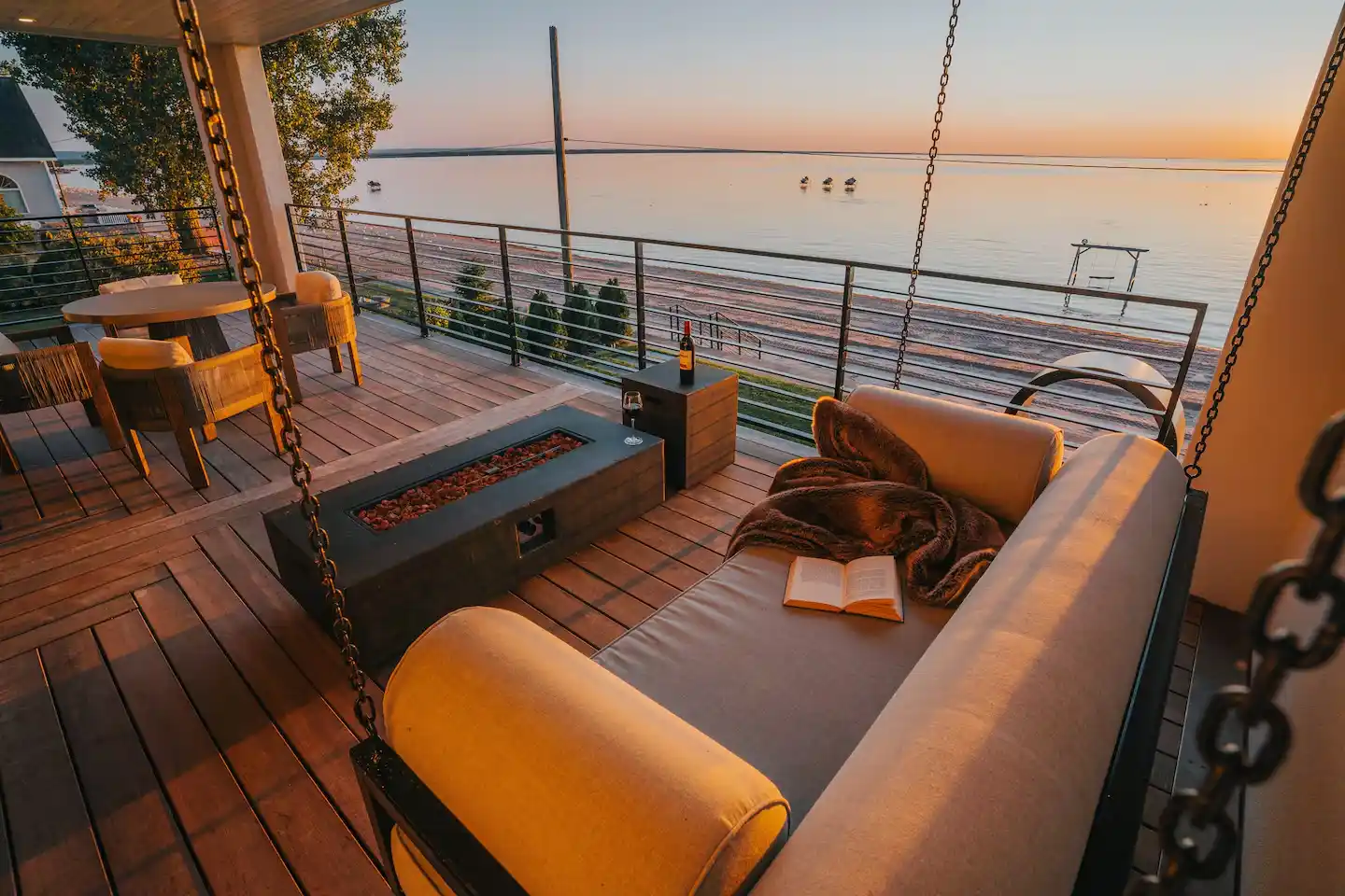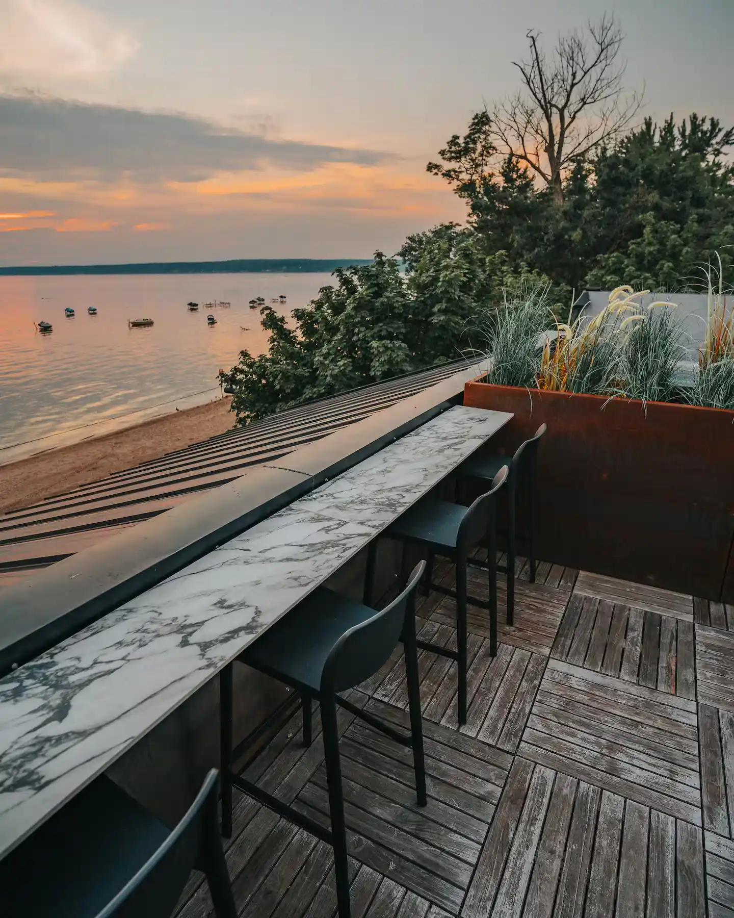 peaceful outdoor atmosphere where you can bask in the sunshine, take in the panoramic lake views, and