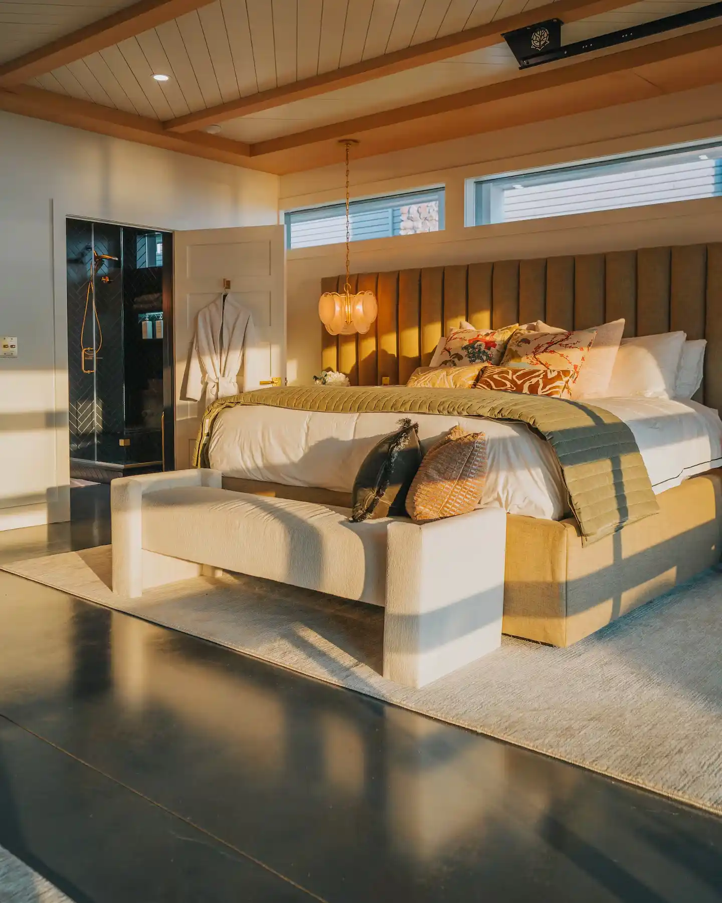 The extremely comfortable king bed takes center stage, providing the perfect setting for unwinding after